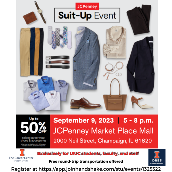 Students can shop for quality professional career wear at extremely affordable prices (up to 50% savings) not available to the general public. Round-trip transportation will be provided from campus to the store.
