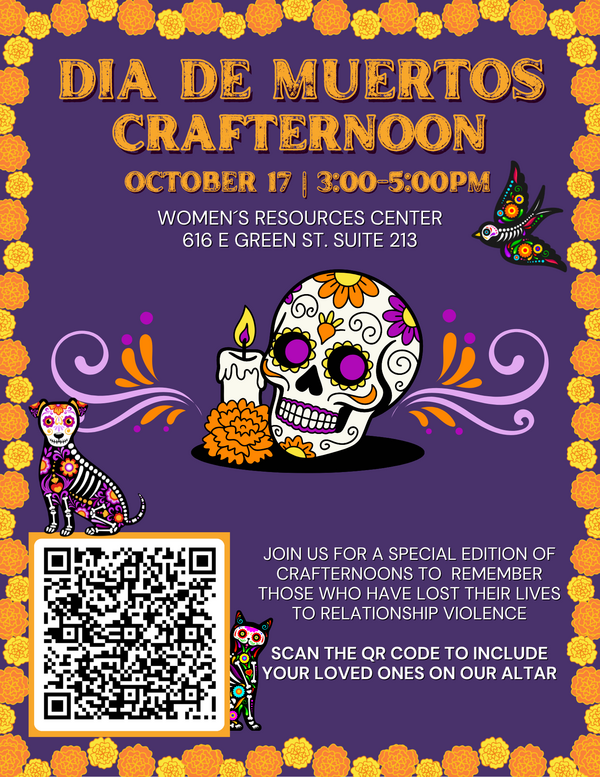 DĂa de Los Muertos is a cherished Mexican tradition, now observed in various Latin American countries, celebrated from October 31st-November 2nd. It is a time to remember and honor those we have lost and inviting their spirits back into our lives and homes through symbolic offerings (ofrendas). This year, the WRC is creating an altar to remember those who have lost their lives to relationship violence.