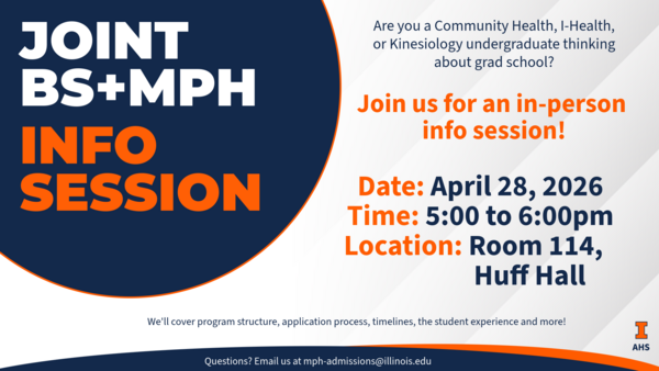 This session is intended for students in eligible Health and Kinesiology majors, including Community Health, Interdisciplinary Health (I-Health), and Kinesiology. We’ll cover program structure, eligibility requirements, the application process, and timelines, and you’ll also hear directly from our current BS–MPH Graduate Ambassador, who will share their student experience and be available to answer questions.