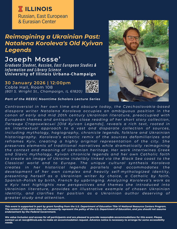 REEEC Noontime Scholars Lecture: Joseph Mosse’, "Reimagining a Ukrainian Past: Natalena Koroleva's Old Kyivan Legends"