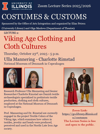 Join us for the second webinar in the Costumes & Customs Lecture Series, sponsored by the Office of Arts Integration and organized in collaboration with the University Library, the Department of Theatre, the Department of Classics, the Spurlock Museum, and the Krannert Art Museum, explores the history and cultural significance of clothing across time and place.
